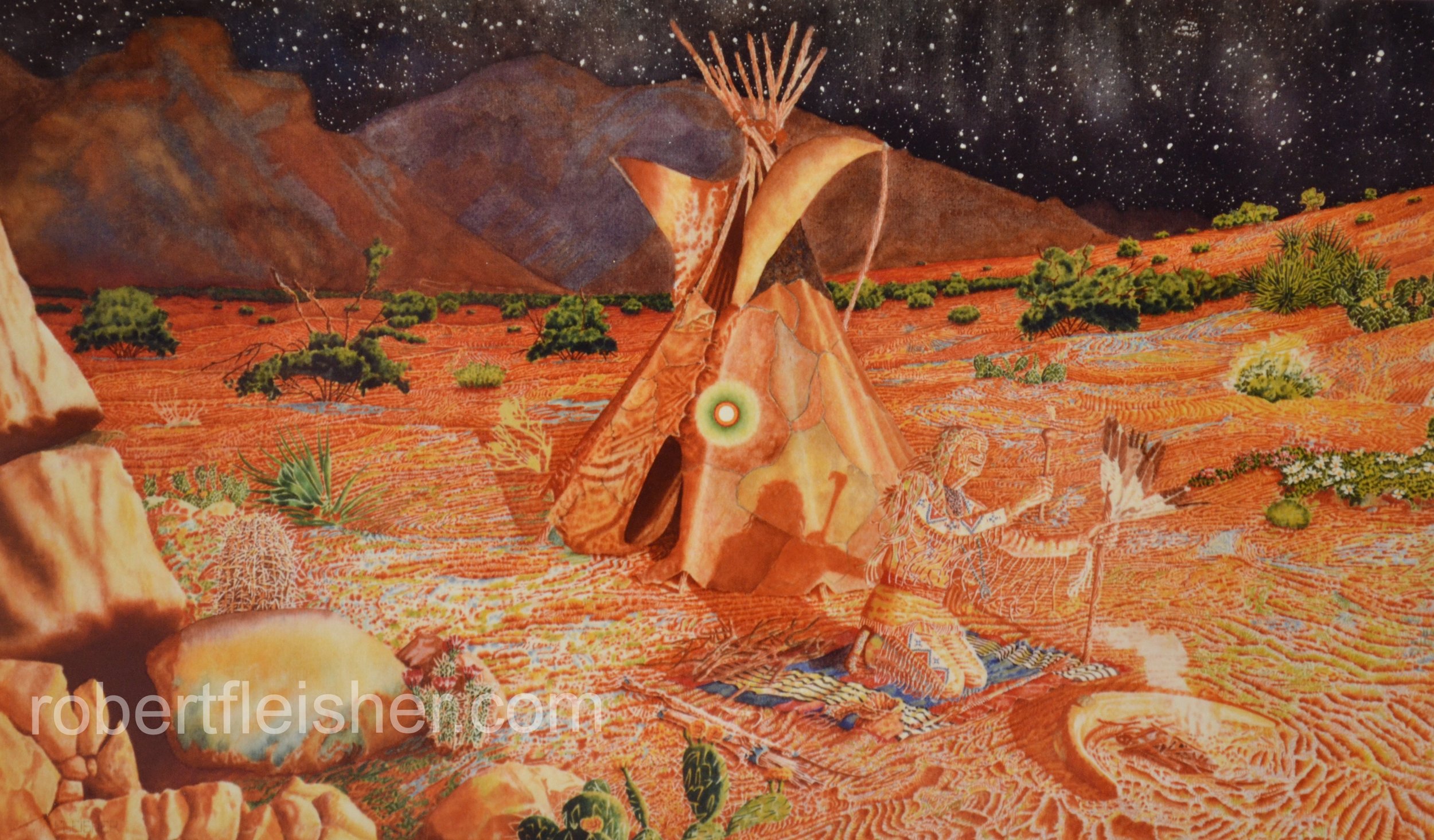 Indian In The Desert 1975 30x16 watercolor